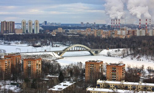 9. Любимый ж/д мост. На Левом Берегу ведется сплошная застройка (сейчас вид гораздо хуже, стоит сравнить кадры со спутника 2007 и 2012 года), строительство дороги Москва-Питер, мусорный полигон сверкает своей высотой, парит ТЭЦ-21. Слева видны высотки — ЖК "Звезда России".
