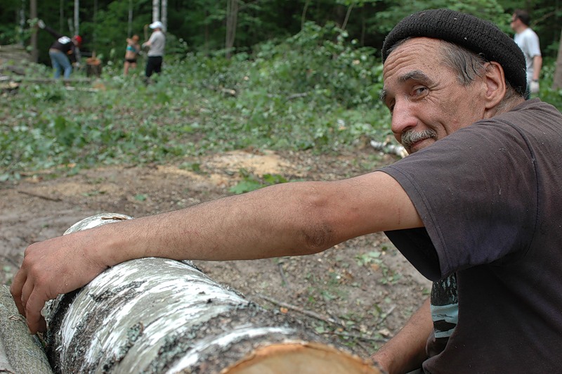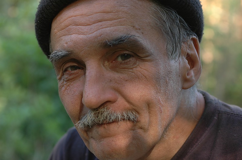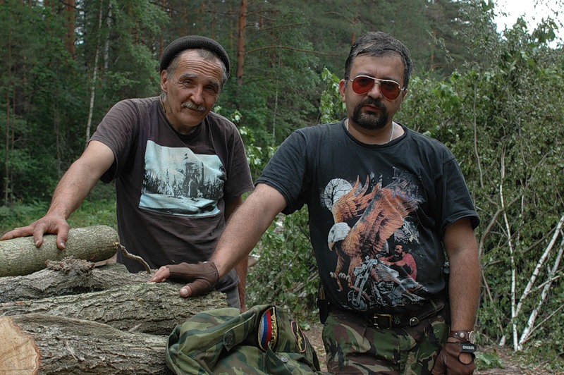Я на него сначала косилась. Колдун все-таки. :-) Говорит периодически про всякое непонятное. Потом оказалось — умнейший и мудрейший человек. И очень добрый. Он в лагерь добрался на попутках и остался с нами. Решил, что он нужен и приехал. Летом на просеках мы с ним в паре работали, кучи складывали. Он то, что потяжелее носил, я то — что полегче. На перекурах говорили про разное. Про жизнь, про музыку, про рисование, про животных, про людей. Он очень много всего видит, на людей смотрит проницательно и много про них понимает. Научил меня варить пшенную кашу "на пяти водах, чтобы зерно раскрылось", очень любит музыку, очень много знает про лес и про то, как выжить в любых условиях практически без ничего. В лагере сам все делал: стирал, одежду чинил, посуду мыл. Он так считает, что человек должен быть аккуратным, в какие бы условия он ни попадал.