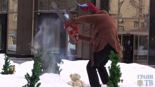 В четверг у здания правительства Московской области прошла театрализованная акция против уничтожения подмосковных лесных массивов, приуроченная к Международному дню защиты леса.