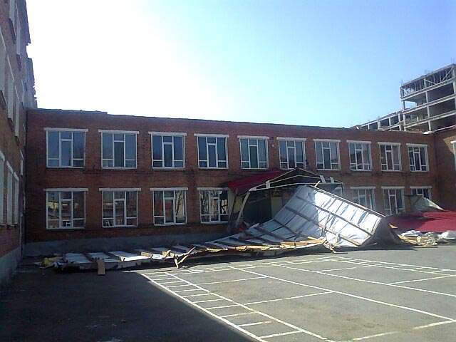 Ураган в Ингушетии: сорвало крышу школы, угроза обрушения торгового центра в Назрани
