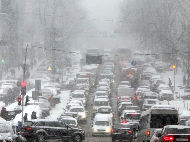 Киев парализовало рекордным снегопадом, который идет на Москву