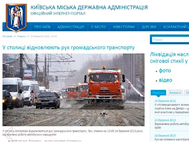 В Киеве, парализованном рекордным снегопадом, власти освоили технологию "уборки снега фотошопом". На сайте администрации Киева появилось прошлогоднее фото, сделанное в Москве, под которым сообщалось: "В столице постепенно восстанавливается движение общественного транспорта". Правда, когда журналисты уличили чиновников в подмене, фото сменили на изображение "более скромного трактора, который в одиночку пытается справиться с последствиями стихии", отмечает liga.net.