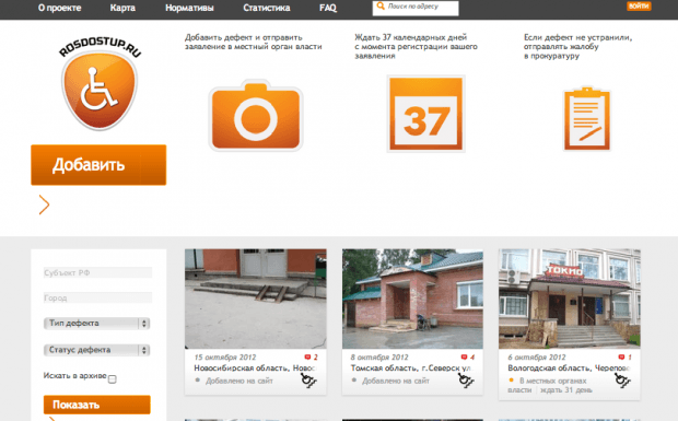 Именно для этого существует «РосДоступ». Наш проект – это площадка, на которой будут отмечены объекты и дефекты в реальных условиях реальными людьми.