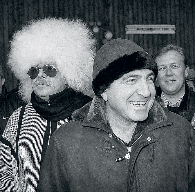 | 1999 г. Домбай. Бизнесмены Бадри Патаркацишвили, Борис Березовский и охранник Андрей Луговой (слева направо) |