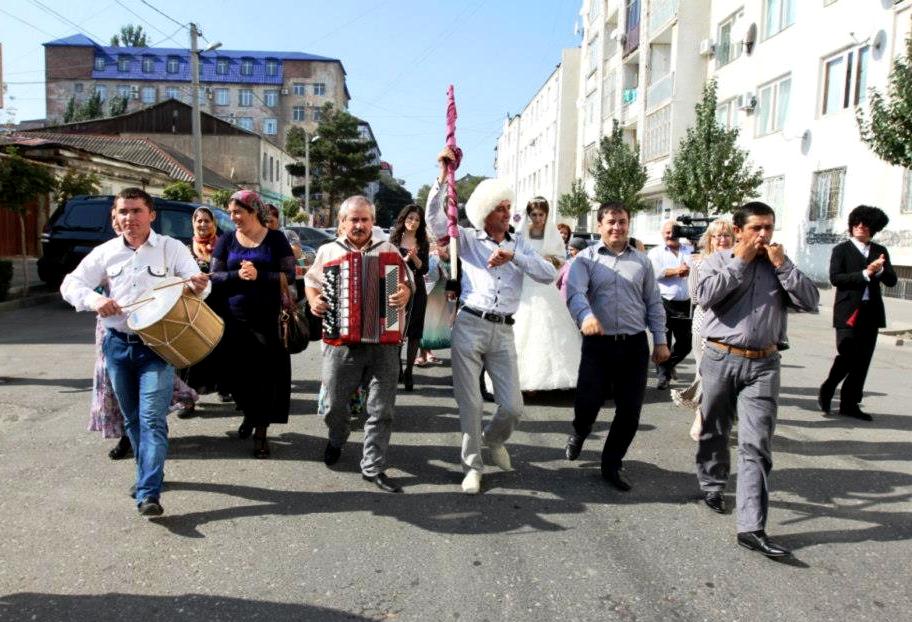 Вот, к примеру, как красиво смотрелись бы молодожены в парадных праздничных национальных нарядах. Или хотя бы в его элементах, как это было на свадьбе Мирзы, брата известного модельера Шамхала Алиханова. Он, как стойкий адепт духовных традиций, и свадьбу брату решил сыграть с элементами обычаев прошлого.