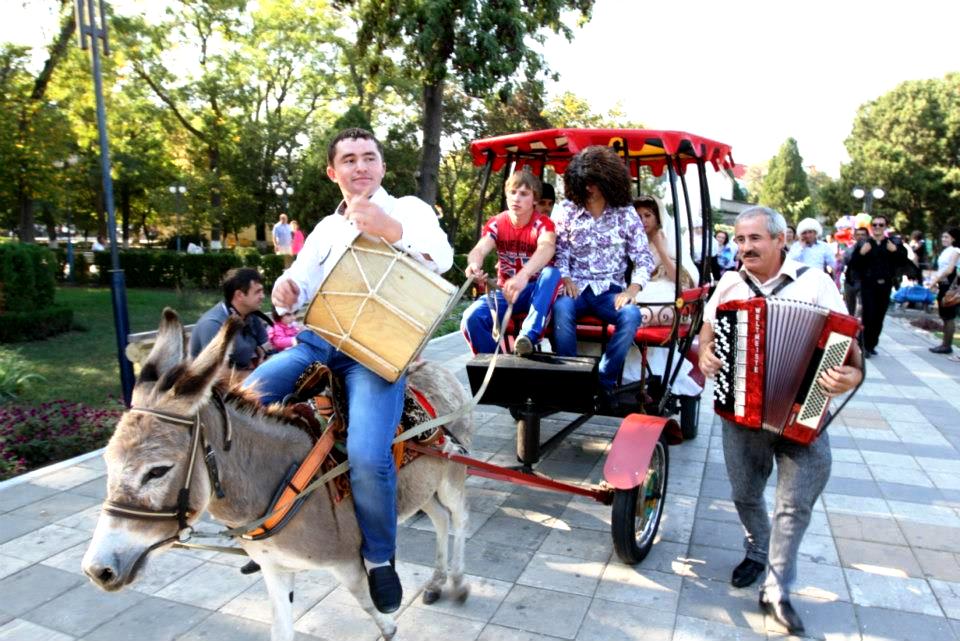В назначенное время от здания Дома Мод, где находится мастерская Шамхала, по старым горским обычаям, с музыкой и плясками началось торжественное шествие.