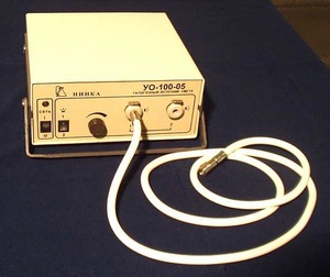 4. Для эндоскопических процедур используется осветитель: источник света, от которого идет световод (это такой шланг с оптоволокном в центре).