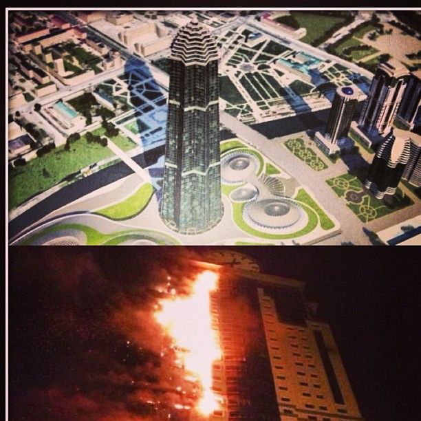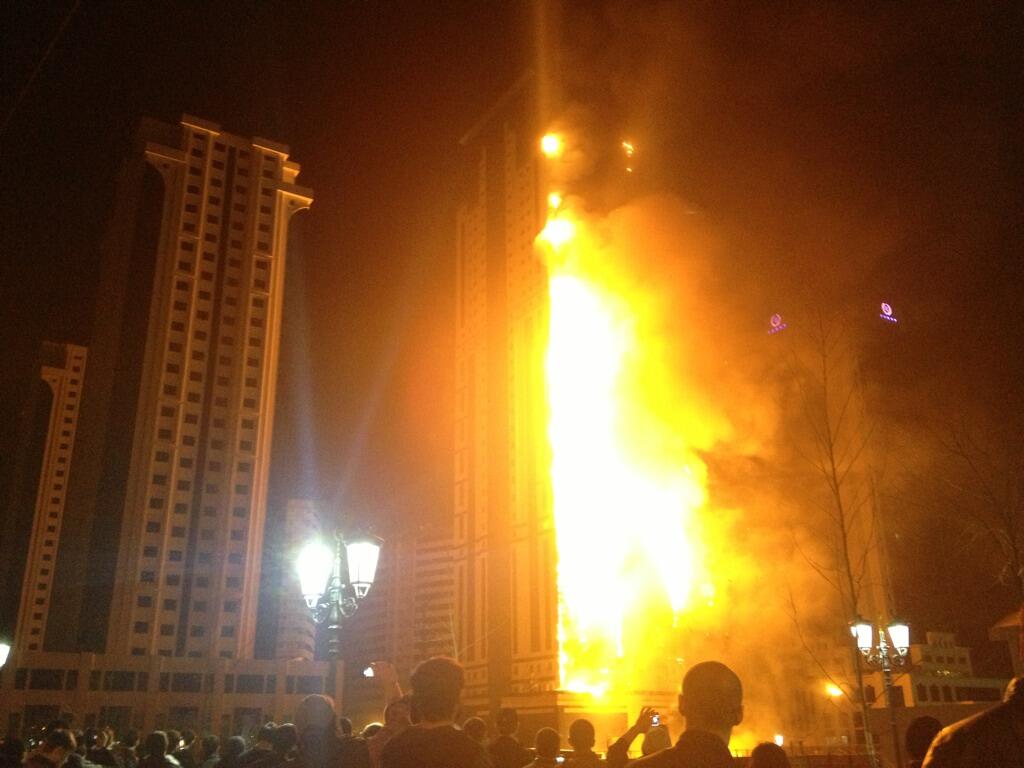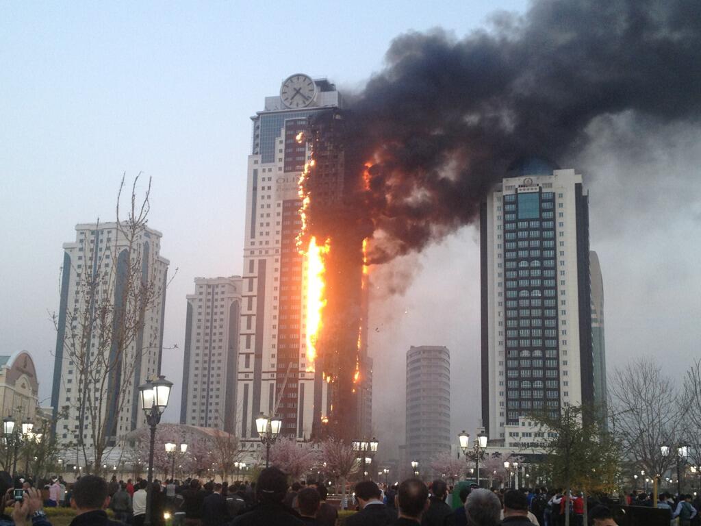Горит небоскреб в Грозном! "Грозный-Сити".