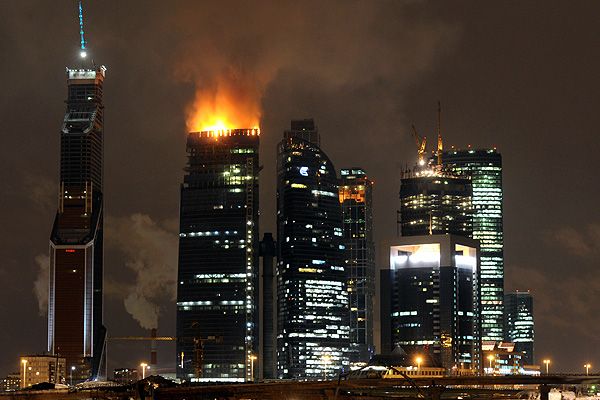Галерея фотографий с пожара в башне "Олимпия" на нашем сайте — http://publicpost.ru/photo/item/id/15617/.