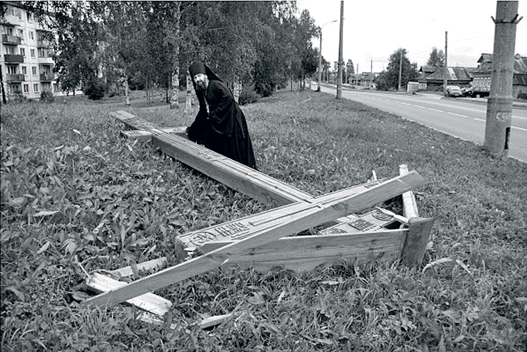 Участившиеся акции процерковных активистов (на фото слева) и сближение государства с РПЦ привели к всплеску вандализма в отношении православных объектов (справа)