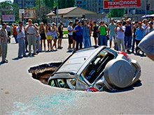 Встречаются дорожные провалы и в Москве. Здесь эксперты их объясняют наличием в столичных грунтах огромного количества "плавунов" и коварной юрской глины. Уверенно соперничать с Самарой в этом опасном рейтинге может еще Китай, где под землю проваливается целый город.