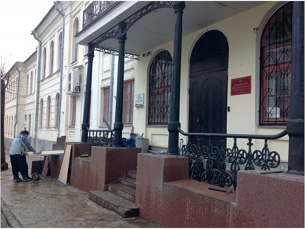 К приезду федеральных телеканалов крыльцо Ленинского районного суда отремонтировали