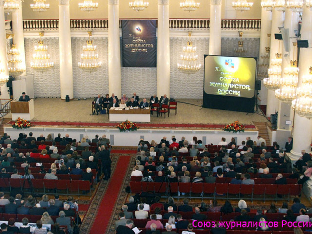 Организаторы съезда были вынуждены внести некоторые изменения в плакат, висевший на сцене Колонного зала Дома союзов. В четверг надпись на нем была следующей: "X-й съезд Союза журналистов России" - однако в пятницу дефис и буква "й" оказались заклеены, передает "Интерфакс".