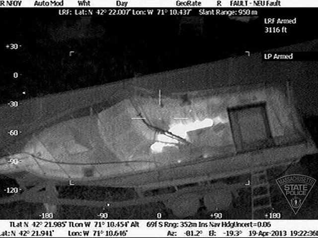 Почти сразу же Джохар выскочил из машины и сбежал на своих двоих, пока его не поймали после многочасовой охоты в лодке на заднем дворе одного из домов. Полиция опубликовала видео финальной сцены, снятое тепловизором с вертолета.
