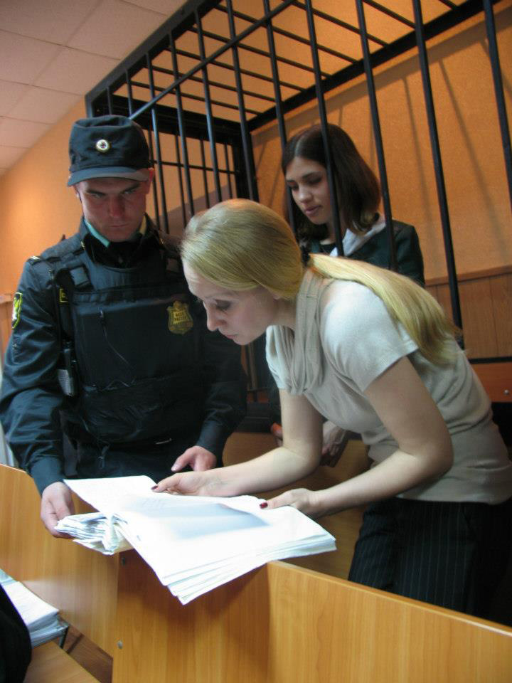 Адвокаты Надежды Толоконниковой — Дмитрий Динзе (слева) и Ирина Хрунова (в центре) — добились того, чтобы к защите допустили психолога Владимира Рубашного (справа). В прошлом Рубашный — глава психологической службы ГУФСИН Татарстана. Характеристика Толоконниковой, предоставленная психологом колонии ИК-14, по мнению защиты, некомпетентна, так как заключенная даже не была лично с ним знакома