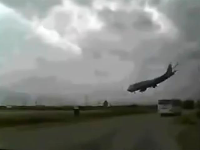Причем кажется, что самолет падает прямо на едущие по асфальтовой дороге автомобили. Но на самом деле он обрушивается на обочину, разлетевшись на части. На месте ЧП тут же поднимается густой черный столб дыма.