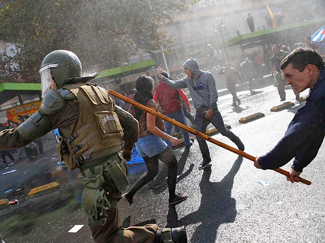 В Чили митинг был санкционирован и хорошо организован, проходил мирно. Группе молодых людей, видимо, быстро наскучило планомерное шествие, и они отправились громить ближайшие магазины. Столица государства - город Сантьяго наполнился звуками разрывающихся петард, бутылок с коктейлем Молотова и битого стекла. Полиции пришлось применить слезоточивый газ и резиновые пули. 60 особо бойких отправились в участки.