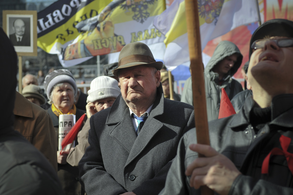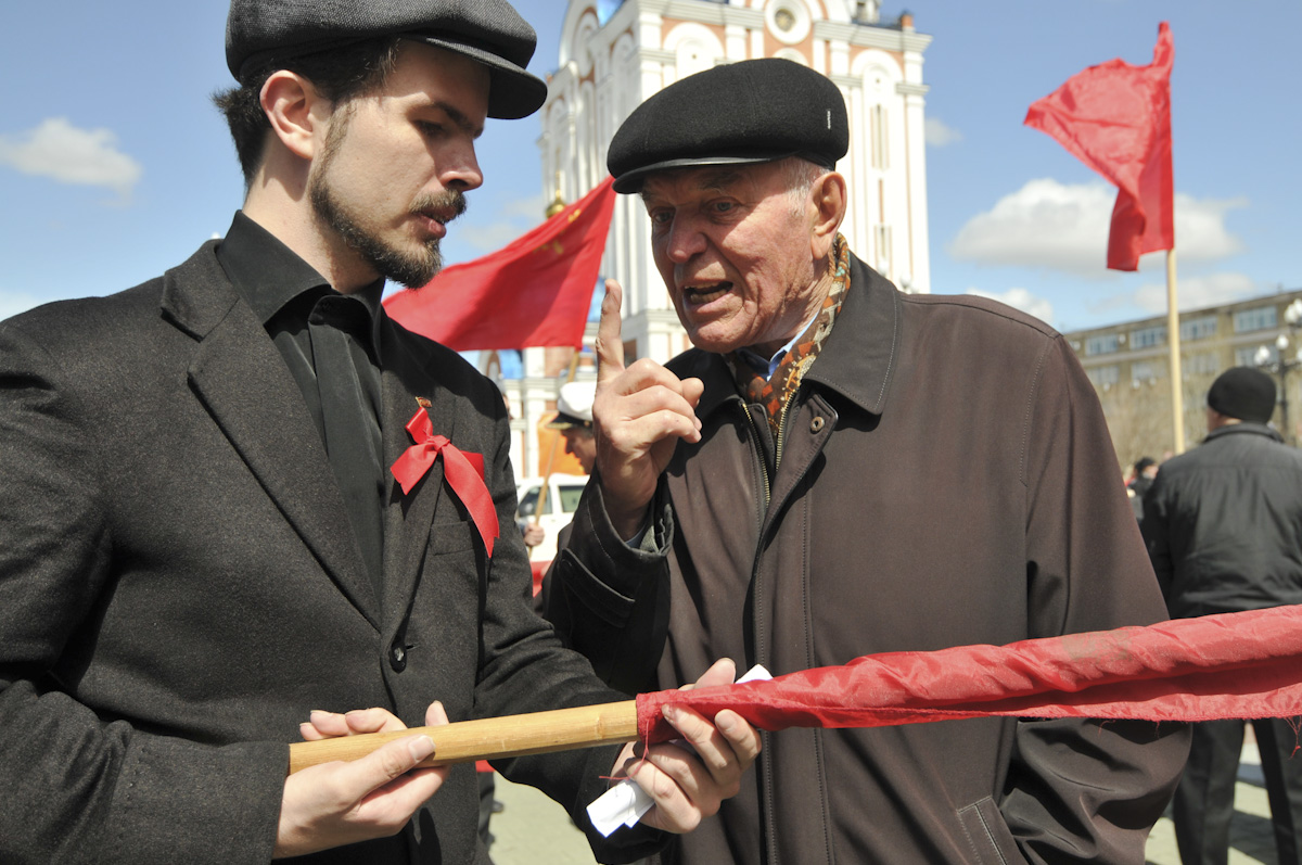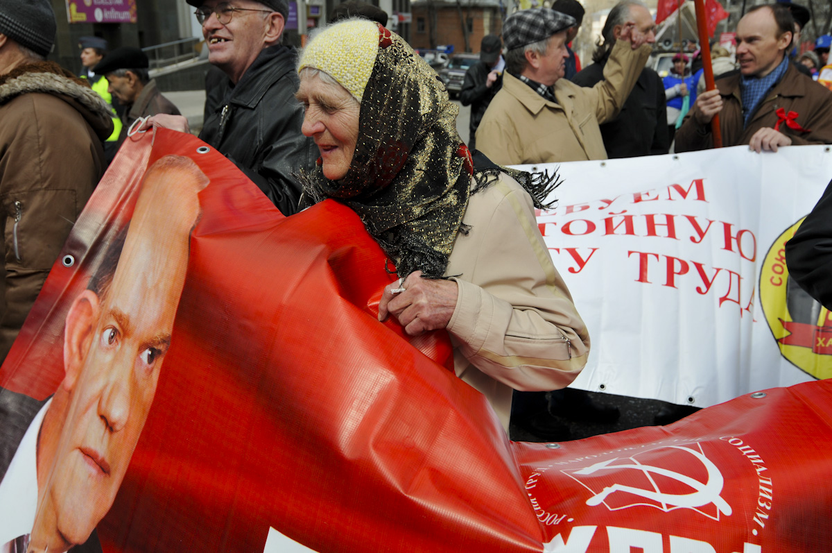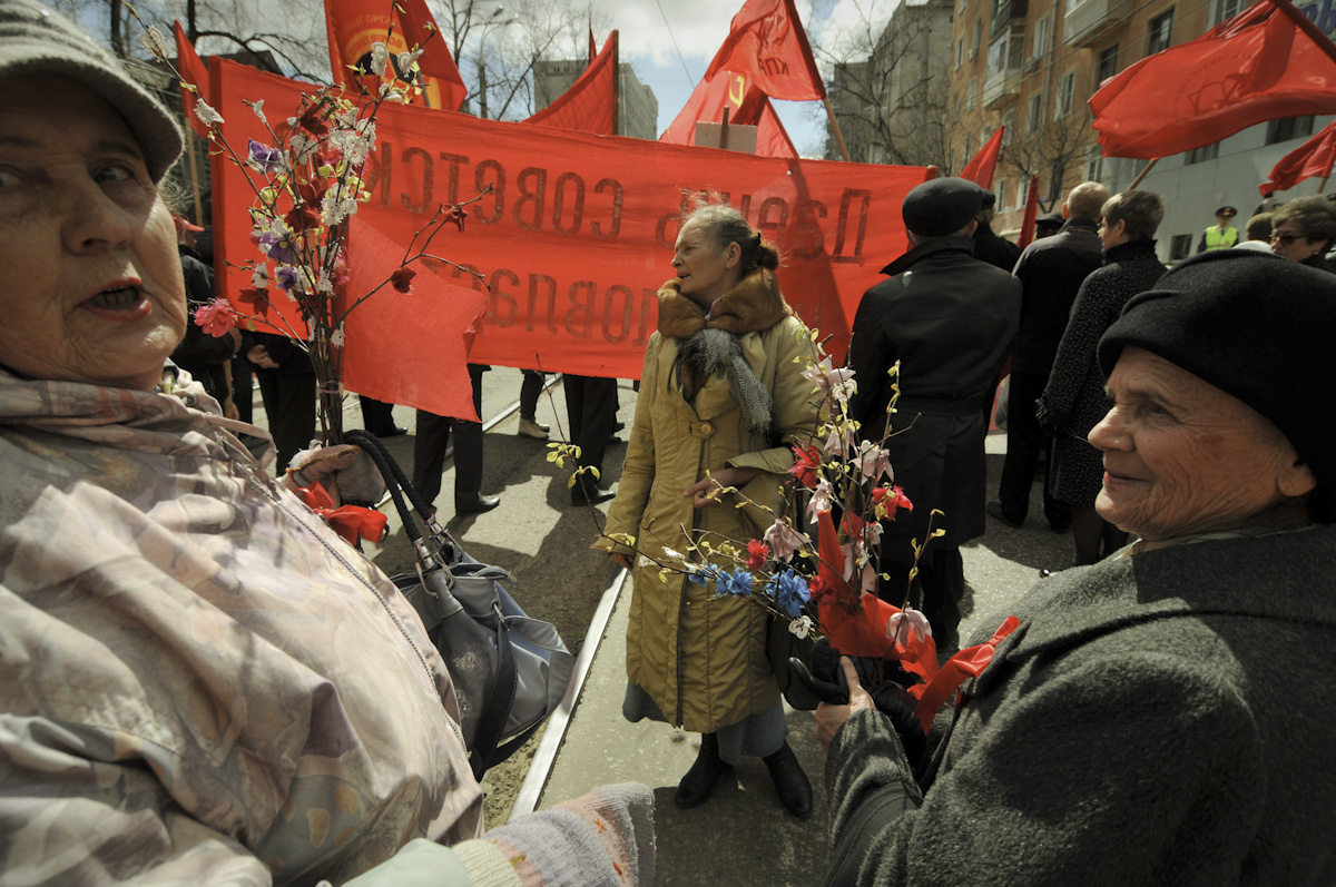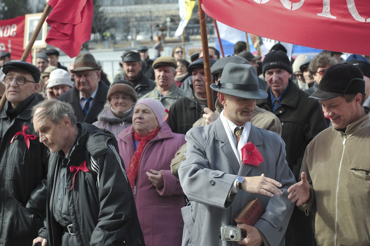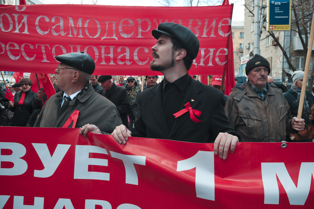 Стандартный набор: красные флаги вперемешку с желтыми знаменами националистов, пыльные старики, слегка ушибленная молодежь, поддержка борющегося народа Северной Кореи, отпор американской военщине, проклятый Чубайс, аккуратные претензии Путину. После окончания — шествие в обход внушительных колонн профсоюзов и "Единой России".