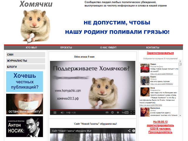 Как следует из видеоролика, размещенного на сайте "Хомячки.com", свою атаку хакеры посвятили Дню Победы, а ее цель - борьба со "всевозможными домыслами и подтасовкой фактов", чтобы память людей, отдавших свои жизни за родину, "ничем не оскорблялась". "Надеюсь, что настоящие патриоты нашей страны нас поддержат", - заявил в ролике активист "Хомячков". Представители организации называют себя сообществом людей "любых политических убеждений, выступающих за чистоту информации и слова в нашей стране".