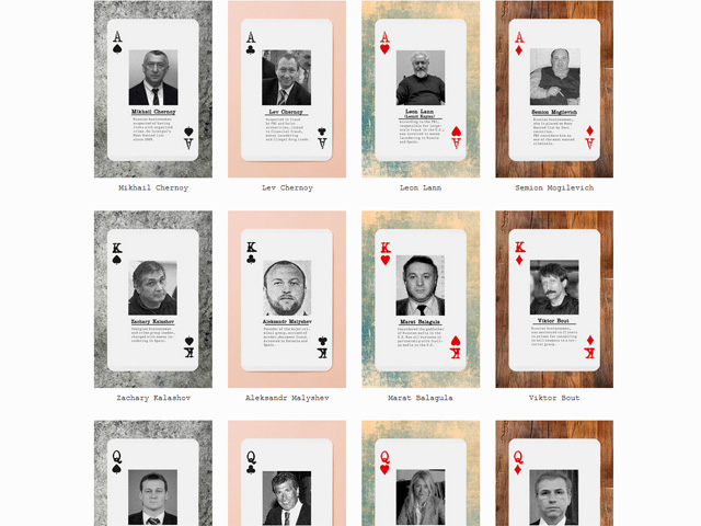 Тузами в колоде карт стали бывший "алюминиевый король" Михаил Черной, его брат Лев Черной, криминальный казначей и "хозяин прачечной русской мафии" Леон Ланн (он же Леонид Каплан, осужденный в Испании) и босс солнцевской преступной группировки Семен Могилевич.