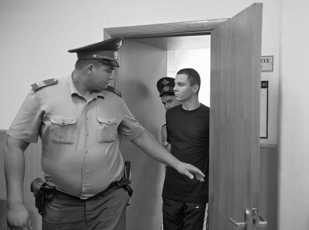 Активист Левого фронта Владимир Акименков во время очередного продления ареста в Басманном суде