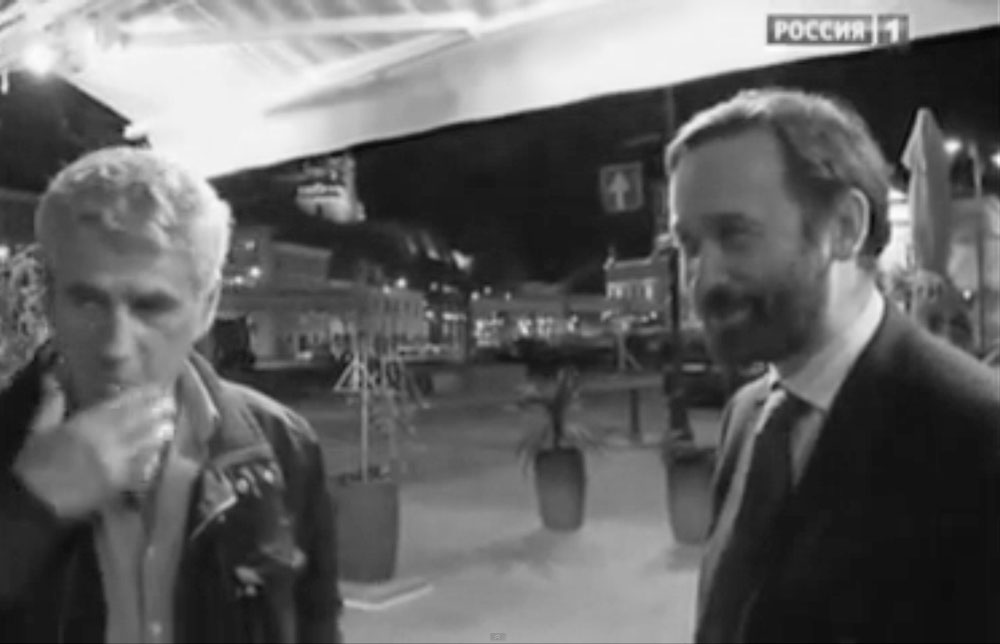На экране: Корреспондент Александр Бузаладзе выходит от Таргамадзе, идет по городу, уже поздний вечер. Голос за кадром: «Из Вильнюса, где Гиви назначил нам встречу, мы привезли интересное видео. Тоже с участием оппозиционных сил. Из серии «Нарочно не придумаешь». Съемочная группа буквально натыкается на группу людей около одной из гостиниц. Можно узнать Владимира Рыжкова, Леонида Гозмана. И Илью Пономарева, которого закадровый голос рекомендует следующим образом: «Депутат Госдумы Илья Пономарев, тот, что получил $750 тыс. за курс лекций продолжительностью 29 минут***. А теперь должен эти деньги вернуть. Может, он приехал просить взаймы?»