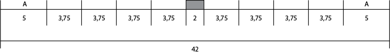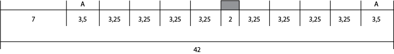 Опять полосы по 3,75 при разрешенной скорости 60 км/ч. В городе, да еще и напротив жилых домов полосы шире чем на МКАДе. Это нормально? Давайте посмотрим, что можно сделать. С учетом того, что по этому участку ездят и грузовые автомобили тоже, сделаем полосы по 3,25 м, а выделенки, на которых все равно нельзя парковаться — по 3,5 метра. Получится вот что: