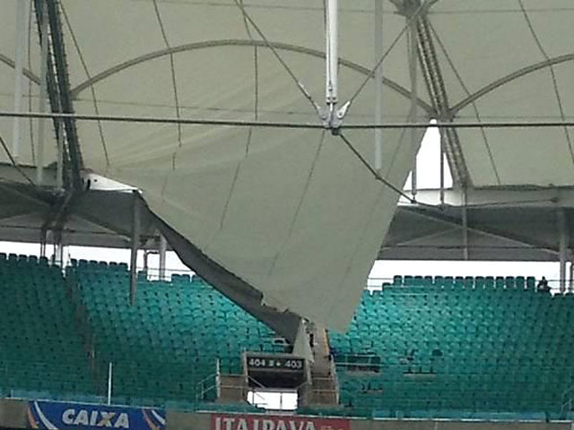 Известный стадион "Фонте-Нова", открытый в апреле 2013 года, находится в бразильском городе Сальвадор. На нем запланировано провести три матча розыгрыша Кубка Конфедераций-2013 и шесть игр ЧМ-2014. Однако спустя месяц стали видны проблемы в конструкции здания.