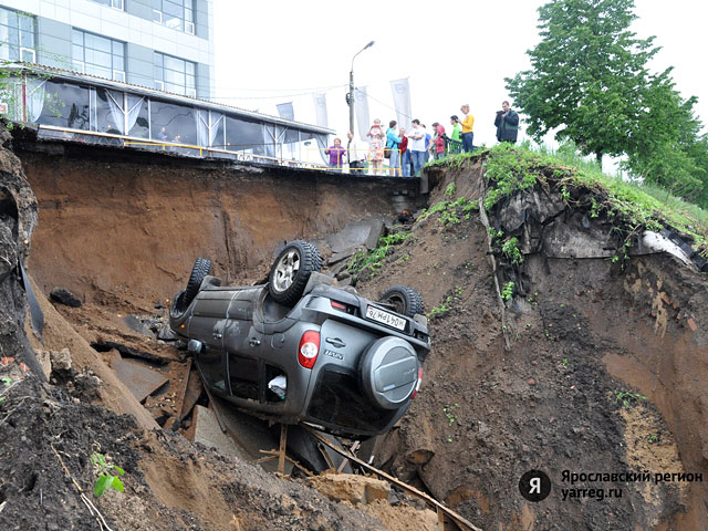 Не только столица России страдала от излишних осадков. Ярославль в четверг буквально затопило после сильнейшего ливня, прошедшего во второй половине дня. Последствия оказались достаточно серьезными: тяжелые пробки, затопленные дороги и даже провалившаяся из-за размытого грунта машина, сообщает РИА "Новости".