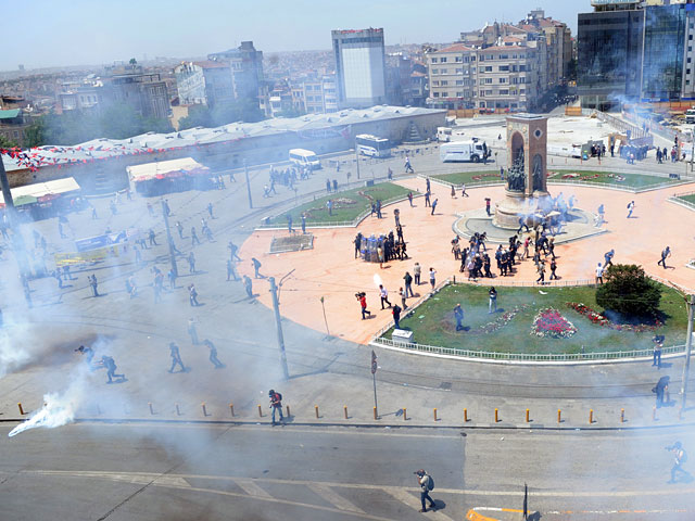 На четвертый день акции противников вырубки деревьев из-за строительства торгового центра в парке Гези в Стамбуле, местная полиция перешла к решительным действиям - она применила водометы и слезоточивый газ против демонстрантов. В результате сидячая забастовка превратилась в массовые беспорядки и стычки с правоохранителями, сообщает местная газета Hurriyet Daily News.