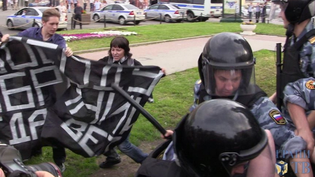 В Петербурге в акции приняли участие не менее ста человек. Активисты партии "Другая Россия" попытались выступить с плакатами "Мы вас научим Конституцию любить" и с портретами прапорщика Вадима Бойко за решеткой. Однако полиция быстро задерживала развернувших плакаты людей. При задержании они сопротивлялись, поэтому практически всех их в полицейский автобус уносили.