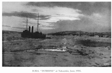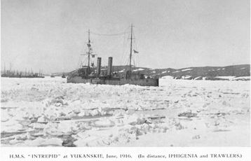 В конце декабря 1917 года крейсер Intrepid под командованием Гвоткина-Вильямса отправился вместе с большей частью британских кораблей домой в Англию. Броненосец Glory остался зимовать в Мурманске.