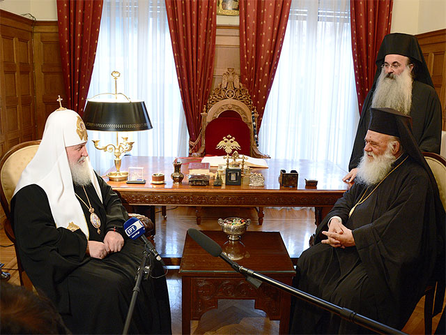 Патриарх Кирилл совершил литургию в Афинах вместе с главой Элладской церкви