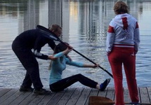 В Екатеринбурге, где 3-4 июня проходит саммит Россия - ЕС, сотрудники ФСО, вооруженные автоматами, прервали тренировку байдарочников на реке Исеть, проводившуюся чемпионом России, участником трех Олимпиад Евгением Салаховым. "Вышел на воду, гребу, никого не трогаю. Подъезжает катер, люди с автоматами приказали выйти с воды. Путин в городе. Боится нас", - написал спортсмен в твиттере. Девушкам, которых тренировал Салахов, пришлось продолжить занятия на суше.