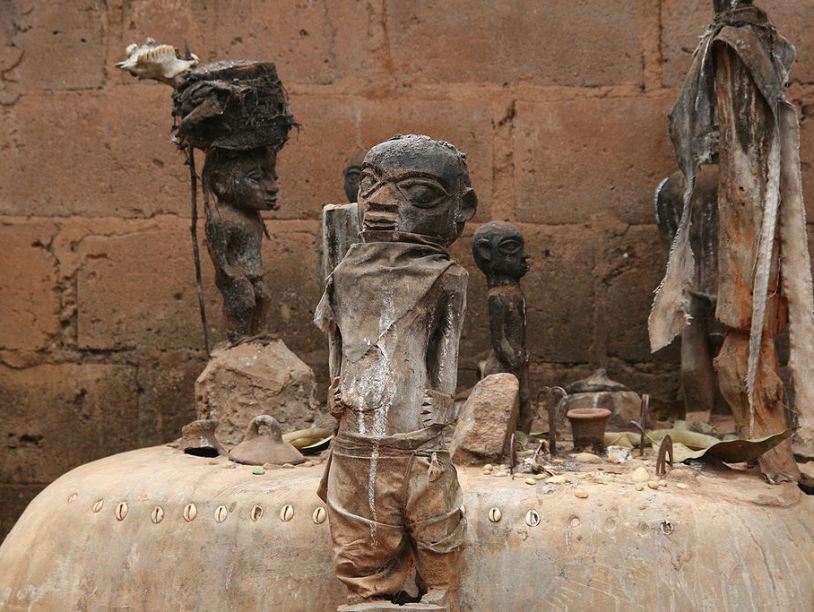 Алтарь вуду в городе Абомей (Бенин) Согласно официальной статистике, большинство жителей этих стран исповедует христианство (44% населения Бенина, 69 % — Ганы, лишь в Того 29% христиан при 51% сторонников традиционных верований). Однако следует учитывать, что в реальности большое число прихожан христианских церквей не прекращает при этом в той или иной степени участвовать и в традиционных культах. Кроме того, христианство наиболее распространено в южных регионах этих стран, возле океанского побережья, где есть много городов. К северу, в зоне саванн, жители в большей степени сохраняют традиционный уклад и культы.
