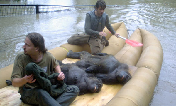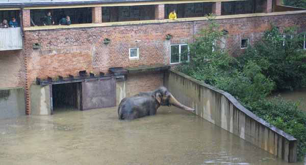 Печально знаменитый пражский зоопарк снова оказался под ударом стихии. Животных эвакуировали постепенно, начиная с нижних уровней. Крупным зверям, например львам и человекообразным обезьянам, пришлось вкалывать транквилизаторы.