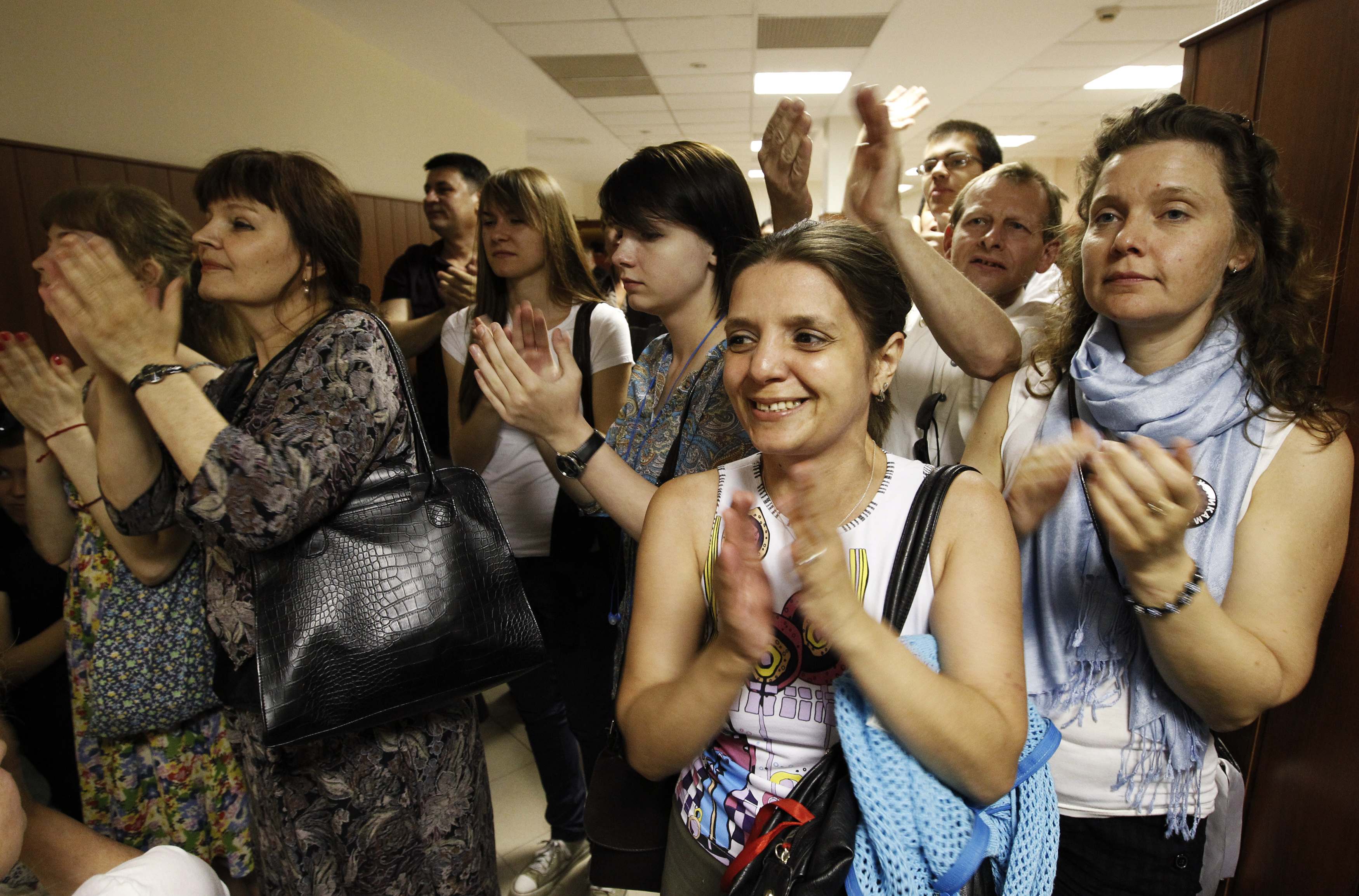"Узники Болотной" в Мосгорсуде 6 мая 2012 года на Болотной площади в Москве произошли столкновения между участниками оппозиционной демонстрации и бойцами ОМОНа. Были задержаны сотни человек. Власти расценили происходившее как массовые беспорядки. Обвинения в участии в беспорядках или в их организации предъявлены почти трем десяткам граждан. Двое уже получили реальные сроки: Максим Лузянин приговорен к четырем с половиной годам колонии общего режима, а активист "Левого фронта" Константин Лебедев по обвинению в организации беспорядков получил почти вдвое меньший срок. Оба признали свою вину.