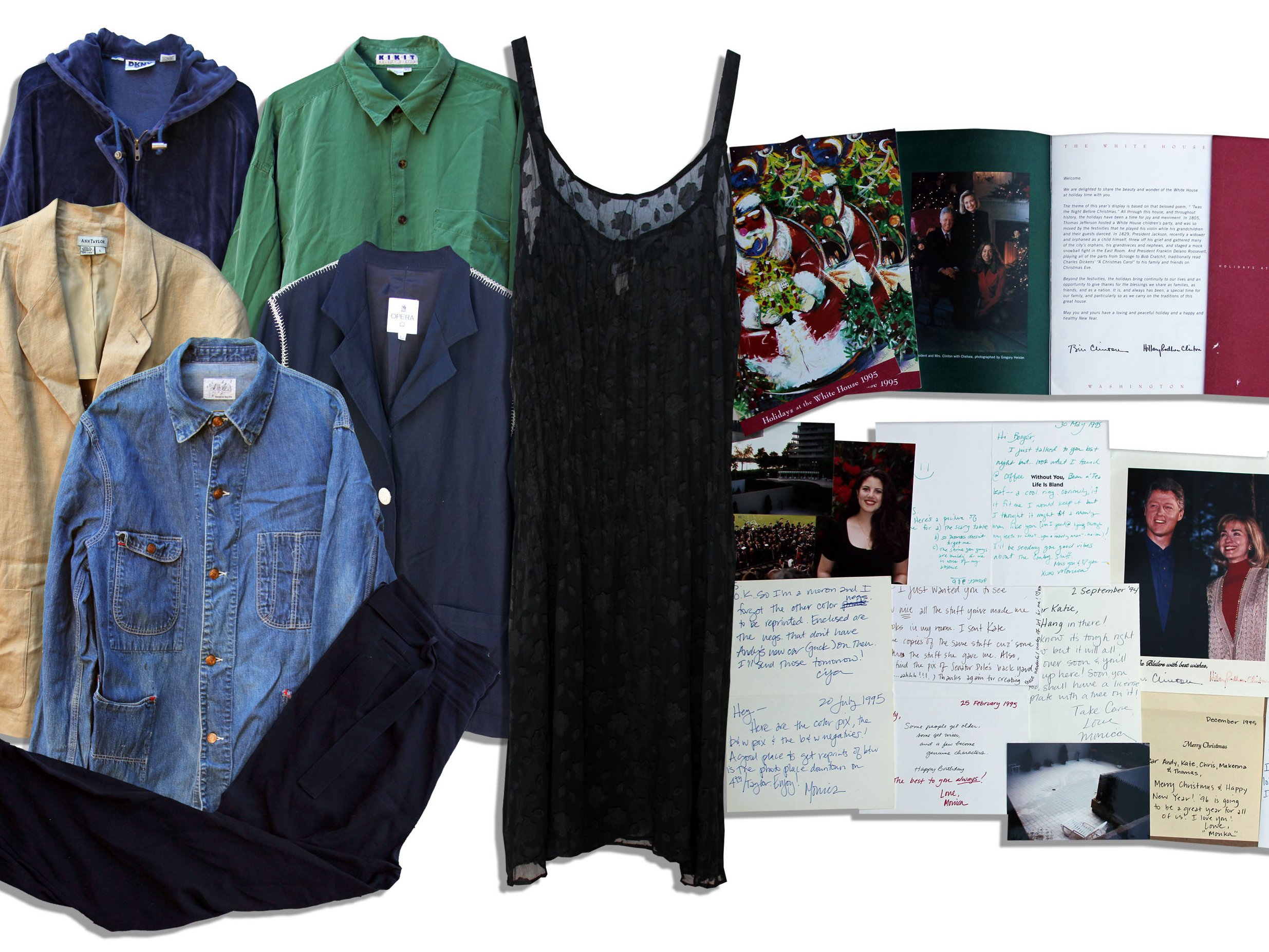 В частности, на продажу выставлены ночная рубашка Левински, брюки, блузки, пиджаки, а также письма и подписанные Клинтоном фотографии. Кроме того, в лот входят письма и открытки, которые Левински отправила другому своему любовнику, преподавателю Энди Блейеру. Левински встречалась с Блейером, который на тот момент также был женат, до того, как у нее начался роман с Биллом Клинтоном.