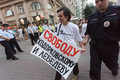На митинге появились около 30 членов прокремлевских молодежных организаций, одетые в майки с портретом убитого мэра Нефтеюганска Владимира Петухова. Они пришли с портретами людей , якобы убитых по заказу Ходорковского. При этом румоловцы раздавали наклейки с надписями "Зарегистрирован как агент пид@расов". Полиция задержала нескольких из них.