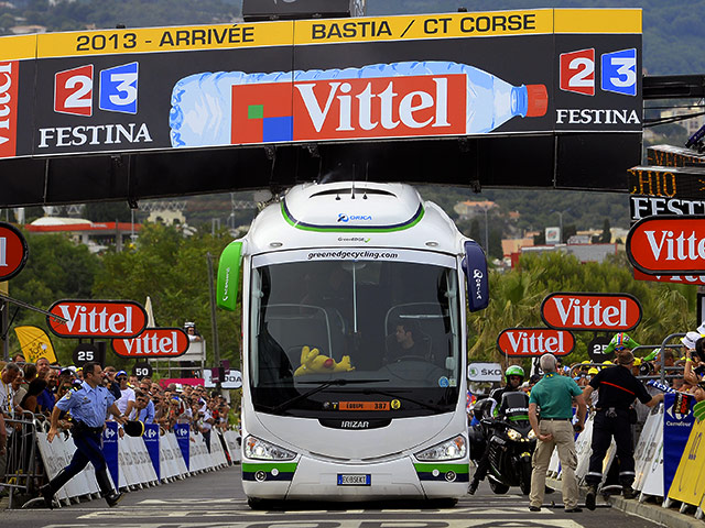 Виной произошедшей неразберихе стал автобус команды Orica-GreenEDGE, зацепившийся крышей за финишную рамку. Авария произошла примерно за 15 км до конца этапа в Бастии – на северо-востоке Корсики, сообщает Eurosport.