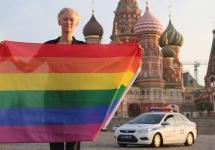 Британская киноактриса Тильда Суинтон вышла на Красную площадь с радужным флагом. Ее фотография на фоне собора Покрова на Рву опубликована в Facebook французского движения "За равный брак и усыновление".