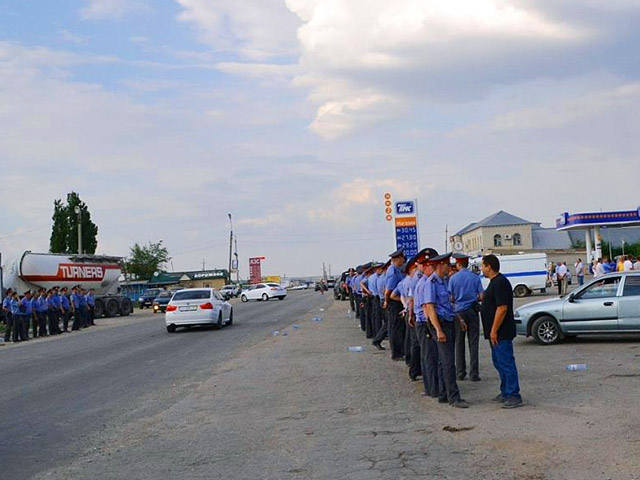"Толпа преодолела первый кордон, полиция ничего не смогла сделать. Горожане просто прошли сквозь жидкую цепочку", - пишет далее корреспондент РСН. Таких кордонов толпа легко преодолела еще несколько, в результате - вышла на федеральную трассу (ФОТО).