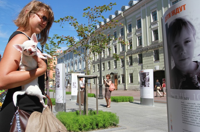 На Малой Конюшенной улице открылась выставка «Дети ждут». На фотографиях — малыши, у которых нет мамы и папы, но которые очень ждут, что семья для них все же найдется.