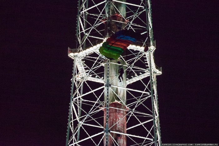 В воскресенье ночью двое молодых людей проникли на территорию телевизионной вышки и совершили прыжок с парашютом. Полиция смогла задержать бейс-джамперов уже после их приземления — обоим теперь грозит административная ответственность и максимальный штраф в 500 рублей за нарушение пропускного режима охраняемого объекта.