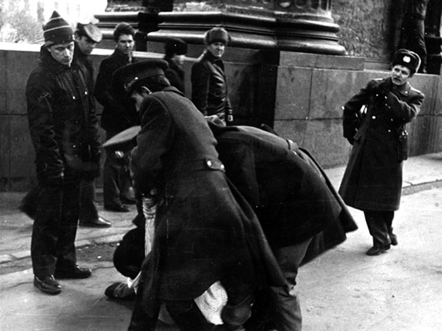Фотографию, о которой идет речь, опубликовал в записи с заголовком "куратор Пу" пользователь "ЖЖ" под ником andrey_trezin. Он утверждает, что фотография подлинная и запечатлела задержание лидера Демократического Союза Валерия Терехова у Казанского собора во время массовой акции протеста 12 марта 1989 года.