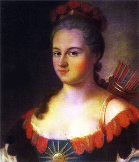 Жан-Франсуа де Самсуа. Портрет М.Г. Тепловой. 1756 г.Вторая супруга, Матрена Герасимовна (Стрешенцова), дочь казака Герасима Демьяновича Демешко (в 1742 году принявшего фамилию Стрешенцов), была двоюродной племянницей Кирилла Разумовского – ее отец был братом Н.Д. Разумовской, матери Кирилла. Замуж за Теплова Матрена вышла не позднее 1754 года[xix], а в 1756 – 1757, по свидетельству Екатерины, стала любовницей великого князя Петра Федоровича. Отношения, как видно, были относительно свободные, но до известных пределов.