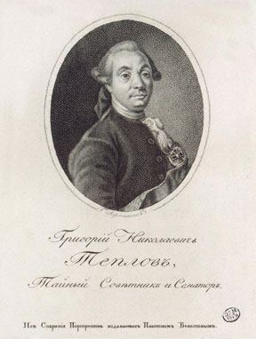 Статс-секретарь Екатерины II Григорий Николаевич Теплов (20 XI 1716 или 1717 – 30 III 1779) оставил по себе память в самых разных сферах – музыке (он выпустил первый русский сборник романсов с нотами «Между делом безделье или Собрание разных песен» на собственную музыку), философии («Знания касающияся вообще до философии», 1751), натуральных науках и сельском хозяйстве («Инструкция, как производить засевы разных табаков чужестранных в Малой России», 1763), историографии («История Малороссии», неизд.), дидактике («Наставление сыну», 1763), птицеводстве («Птичий двор», 1774), медицине («Разсуждения о врачебной науке, которую называют докторством», 1774), не говоря уже о политике. Став асессором Академии, Теплов вошел в ее историю враждой с Ломоносовым, Миллером и другими академиками, особенно иностранными.