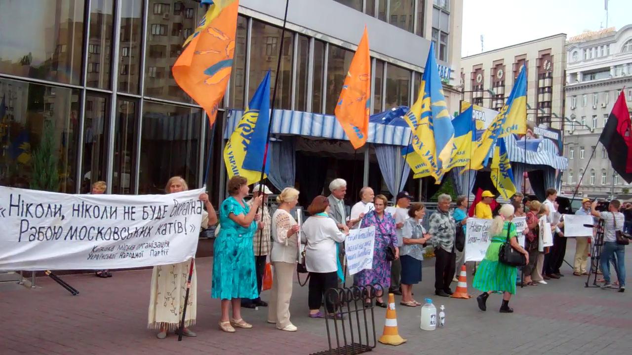 В отличии от членов “Свободы”, митинговавшие на Европейской площади, представителям Коалиции участников оранжевой революции и активистам "врадиевского шествия" не удалось провести свою акцию на Майдане Незалежности. Милиция задержала десятерых ее участников, в том числе и одного священника, который заявил, что приехал в Киев из Львова помолиться за Украину.