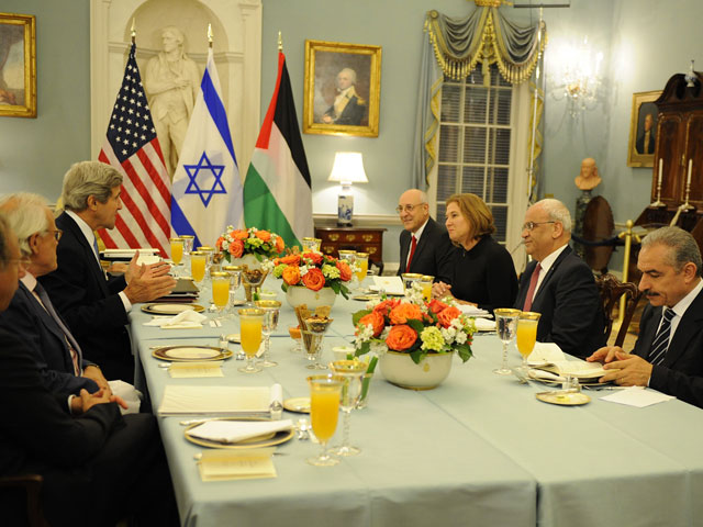Главы делегаций Израиля и Палестинской национальной администрации встретились в Вашингтоне с целью возобновить процесс мирного урегулирования, прерванный в 2010 году. Так называемые предварительные переговоры с участием наделенных соответствующими полномочиями министра юстиции Израиля Ципи Ливни и советника главы ПНА Саиба Эреката прошли при посредничестве госсекретаря США Джона Керри во время полуторачасового обеда вечером 29 июля.