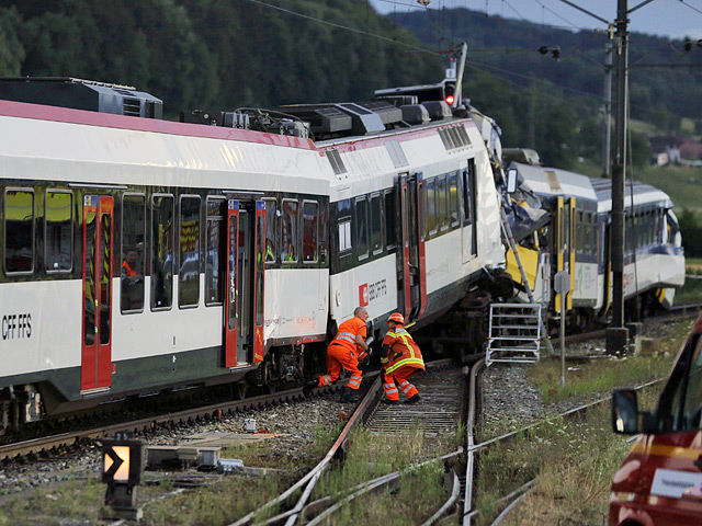В результате столкновения двух поездов в Швейцарии погиб машинист